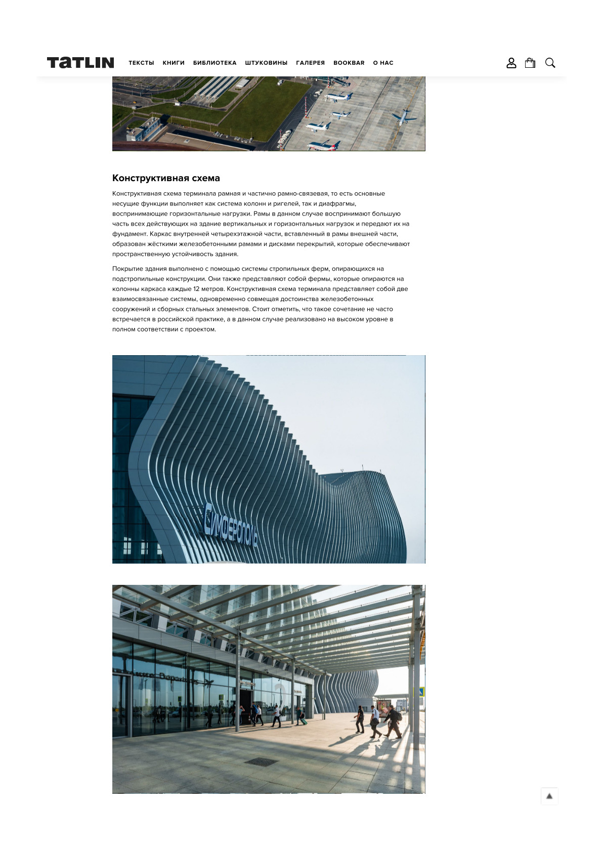 The roof structure is composed of trussed rafters supported by sub-trusses, which in turn rest on the main columns at twelve-meter intervals. The terminal thus represents two interlinked structural systems, combining the advantages of reinforced-concrete structures with prefabricated steel elements. Such a hybrid solution is rare in Russian practice, yet in this case it was executed at a very high level, in full accordance with the project specifications.