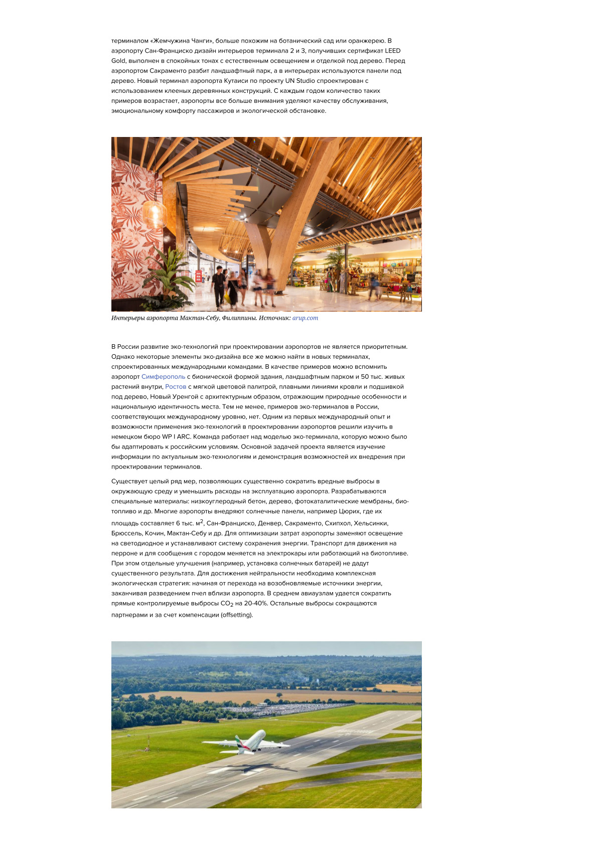 In Russia, the development of eco-technologies in airport design is not yet a priority. However, certain elements of eco-design can still be found in new terminals designed by international teams.