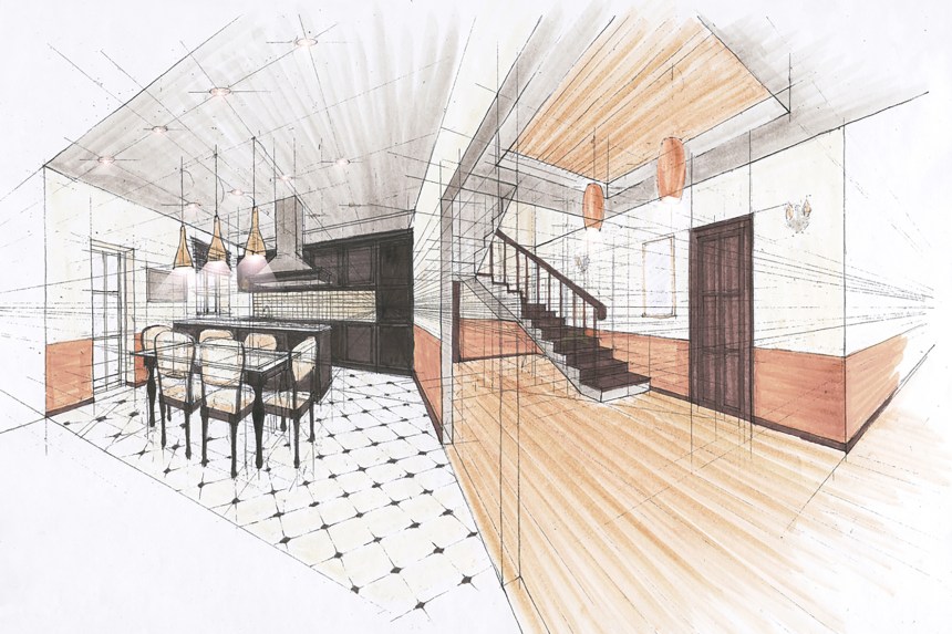 Due to the pre-3D modelling era, the majority of projects have few or no visualization. Here is an example of an interior design project for residential house. Instrument – hand drawing.